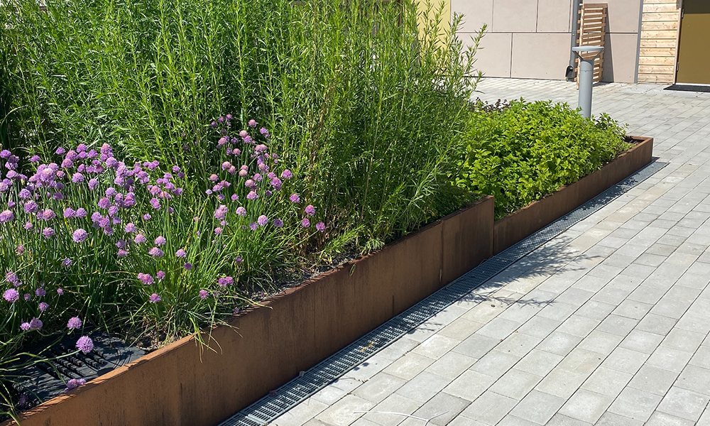 - CoreBlue™ toimii passiivisena kastelujärjestelmänä, joka kerää pintavaluntaa ympäröiviltä päällystetyiltä alueilta, kuten jalkakäytäviltä ja katoilta.