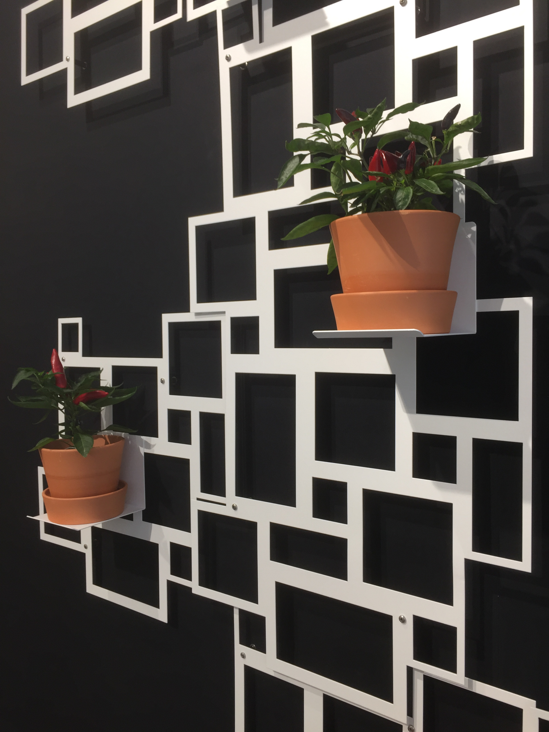 Rom-mallin muotoilu perustuu niin sanottuun roomalaiseen ladontaan, joka koostuu neljästä eri suorakulmaisesta muodosta. Se, mikä ensi silmäyksellä näyttää satunnaiselta, perustuu todellisuudessa tarkasti suunniteltuun järjestelmään. Yksittäisten linjojen korostaminen luo Rom-rakenteeseen lisävisuaalisia aksentteja. Vaakasuoriin kohtiin voidaan kiinnittää myös pieniä tasoja, joihin voi sijoittaa ruukkukasveja..