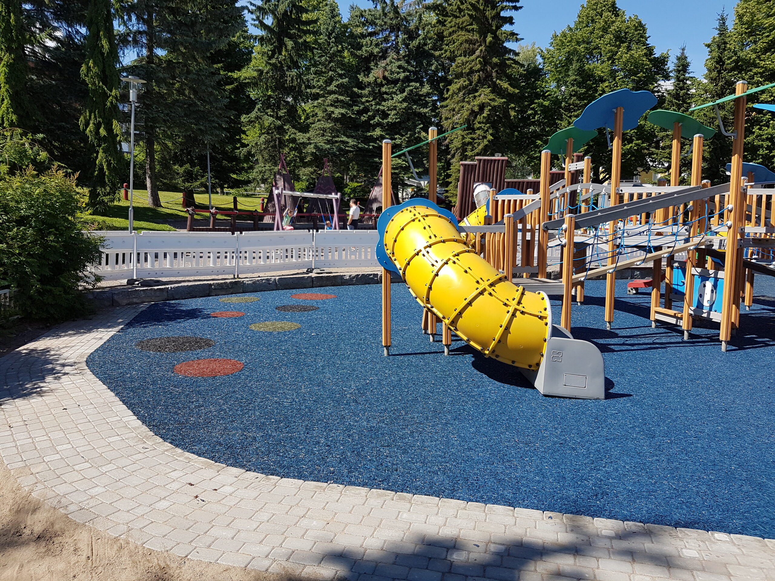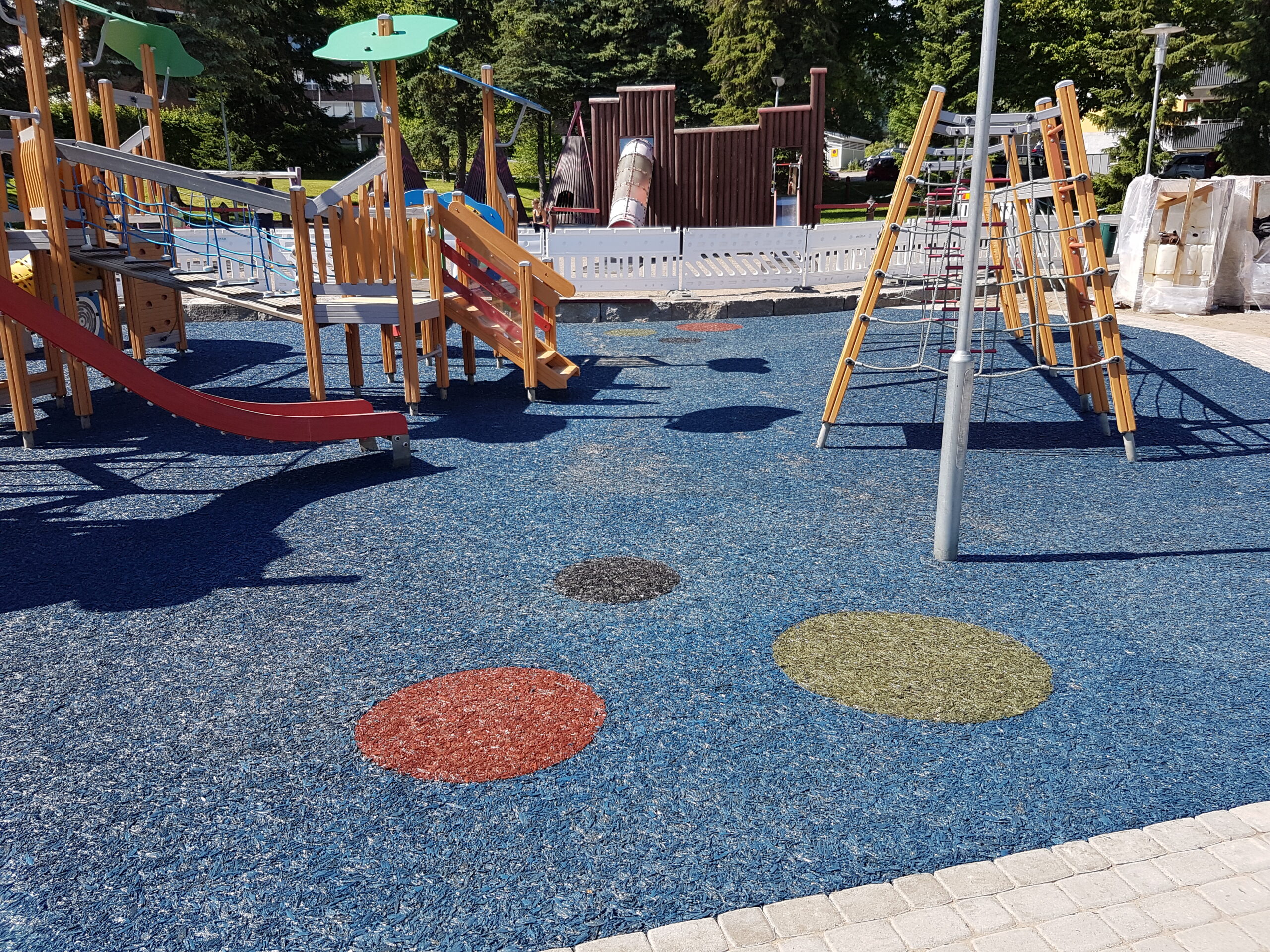 Ecosurface turva-alusta asennettu Valkeisen puiston leikkipaikalle