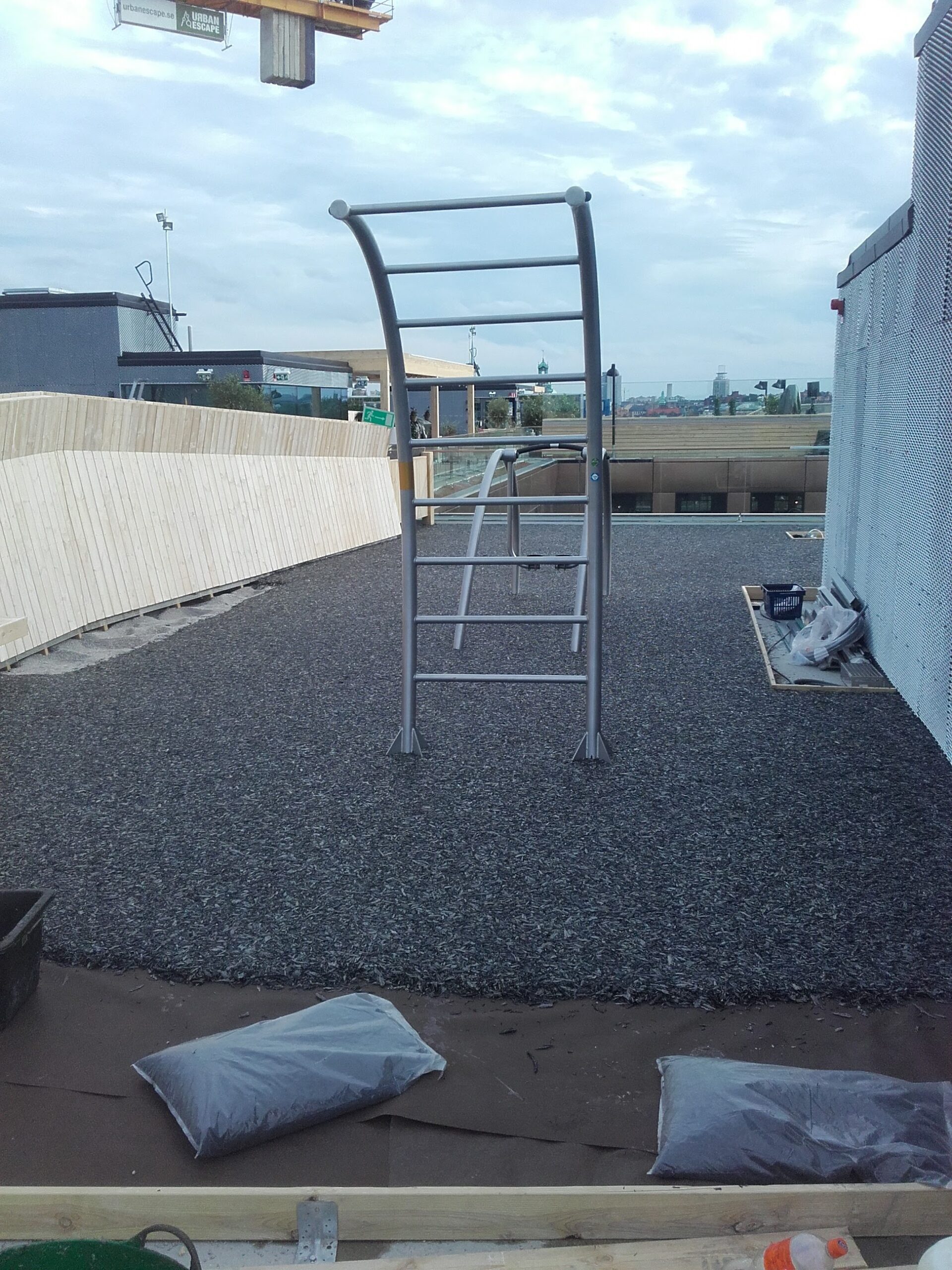 Kauppakeskuksen katon oleskelualueelle on asennettu Ecosurface-alustaa.