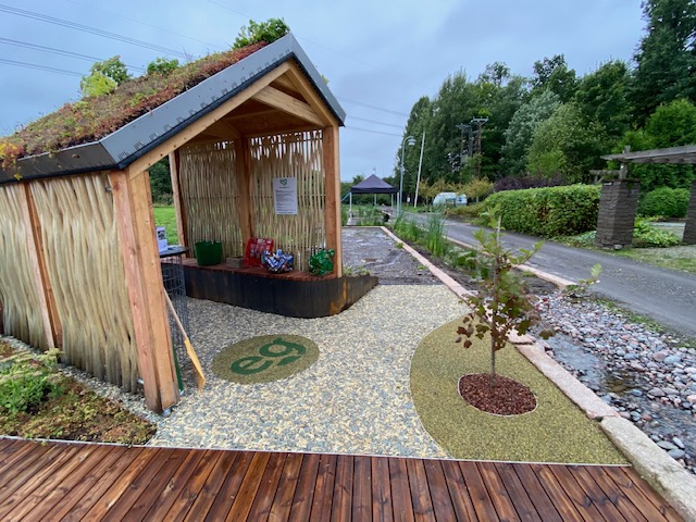 Paviljonki ympäristöineen esittelee Eg-Trading Oy:n tuotteita.