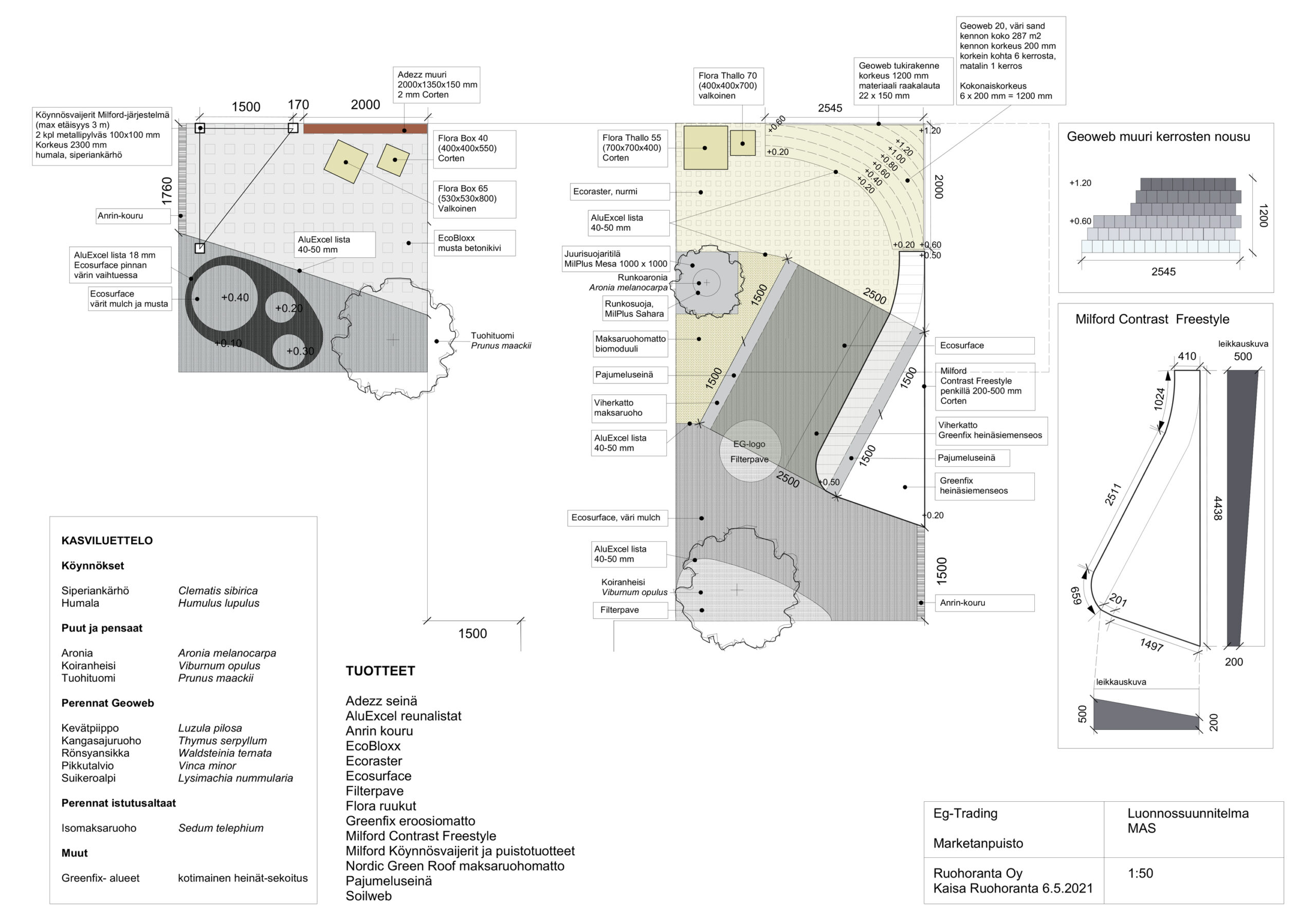 Eg-Trading Oy, showroom ulkona, suunnitelma ja toteutus