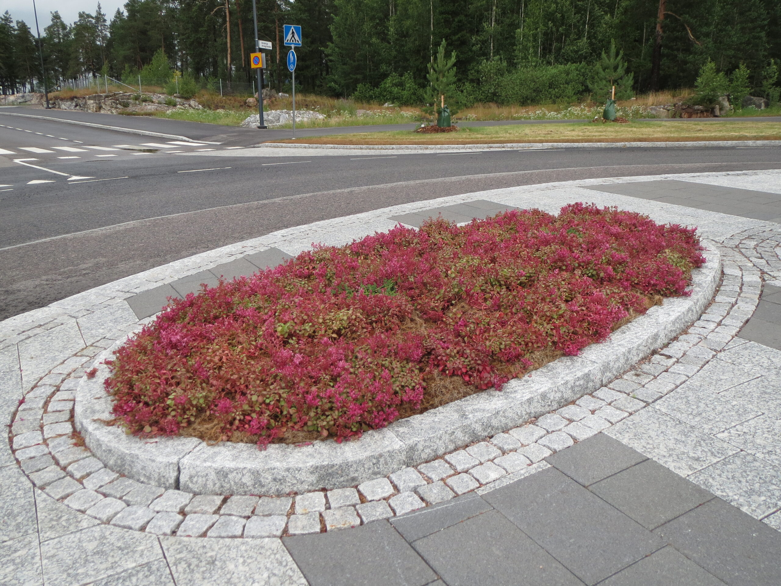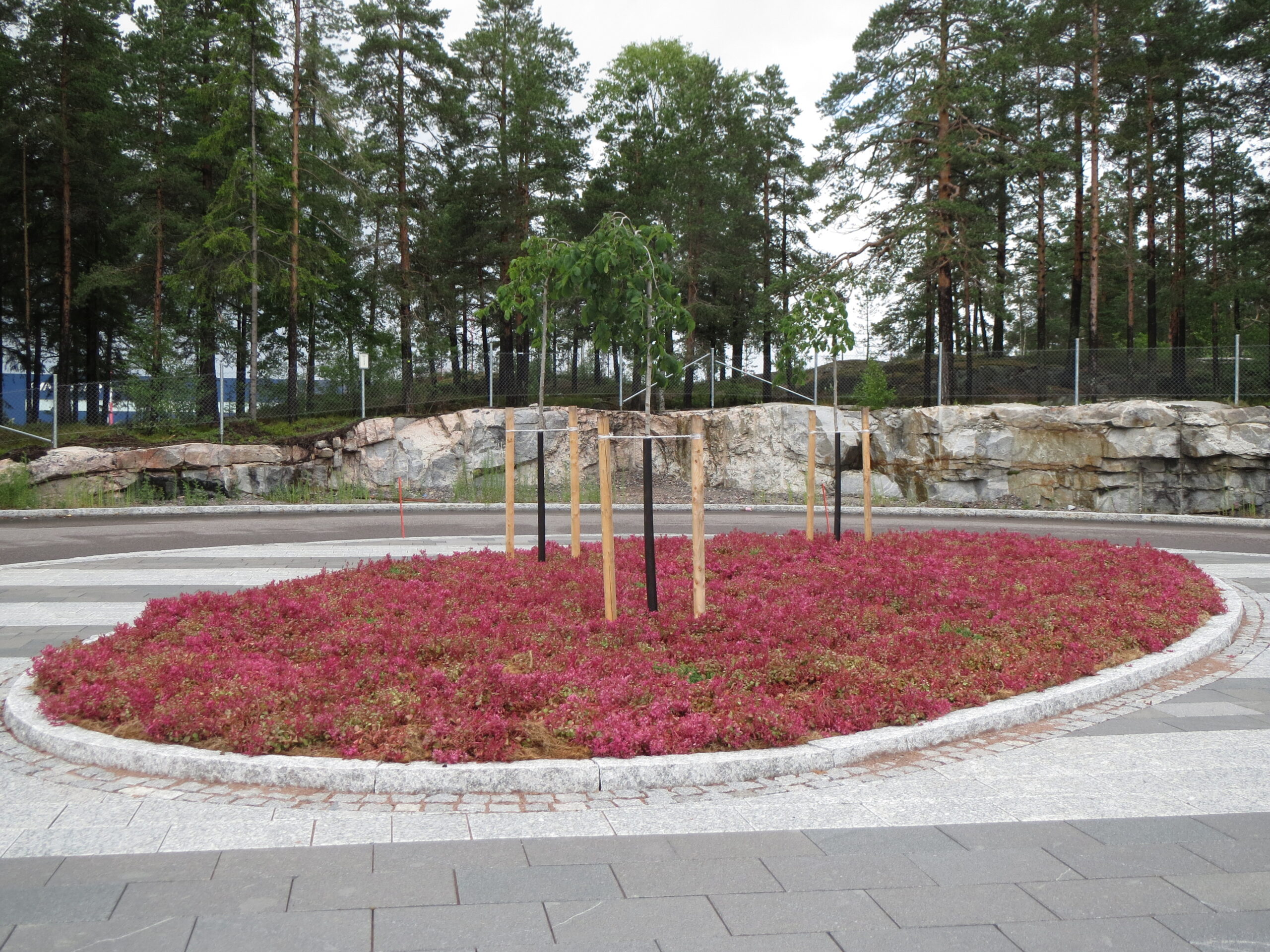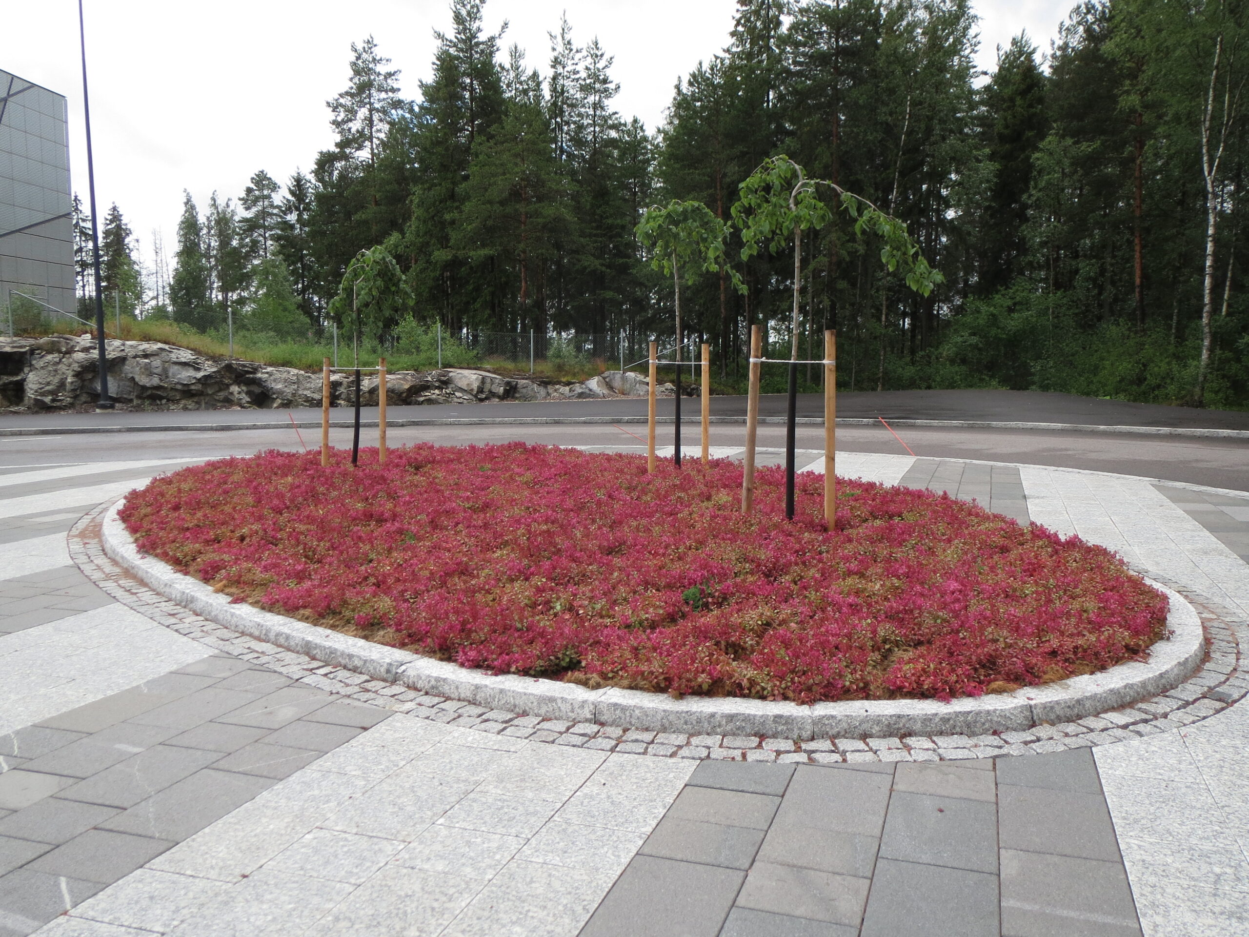 Sedum spurium -perennamattoa asennettu 100m² Vantaan Aviakujalle 2020.
