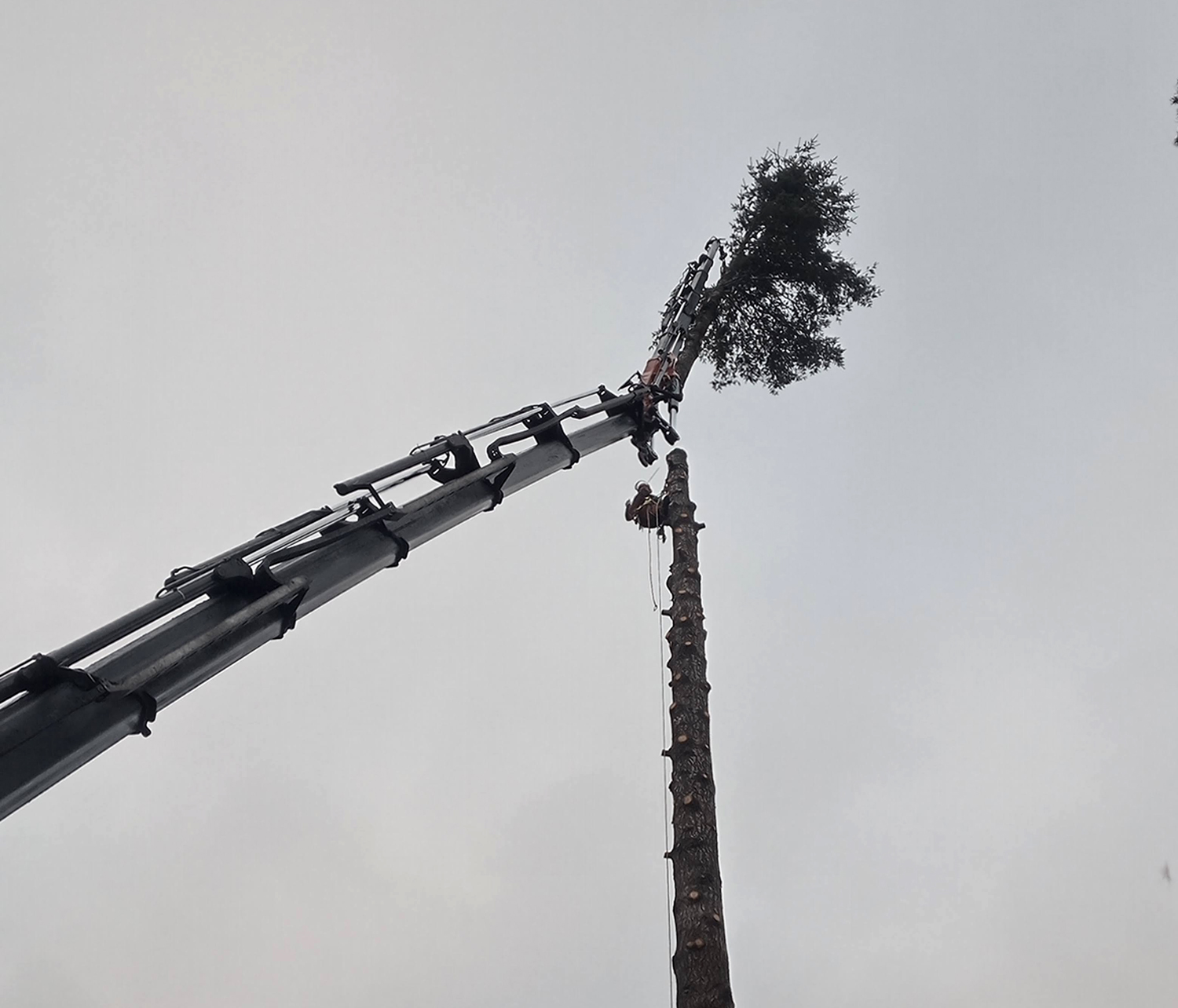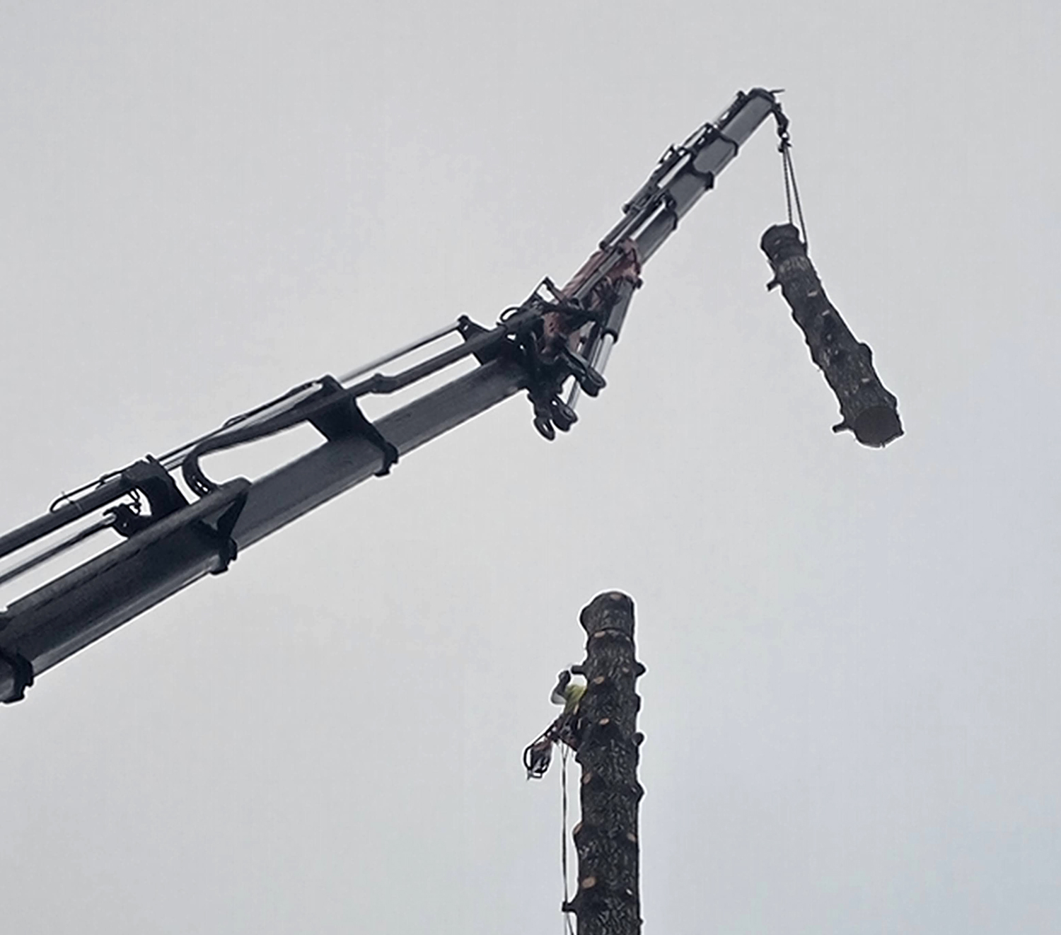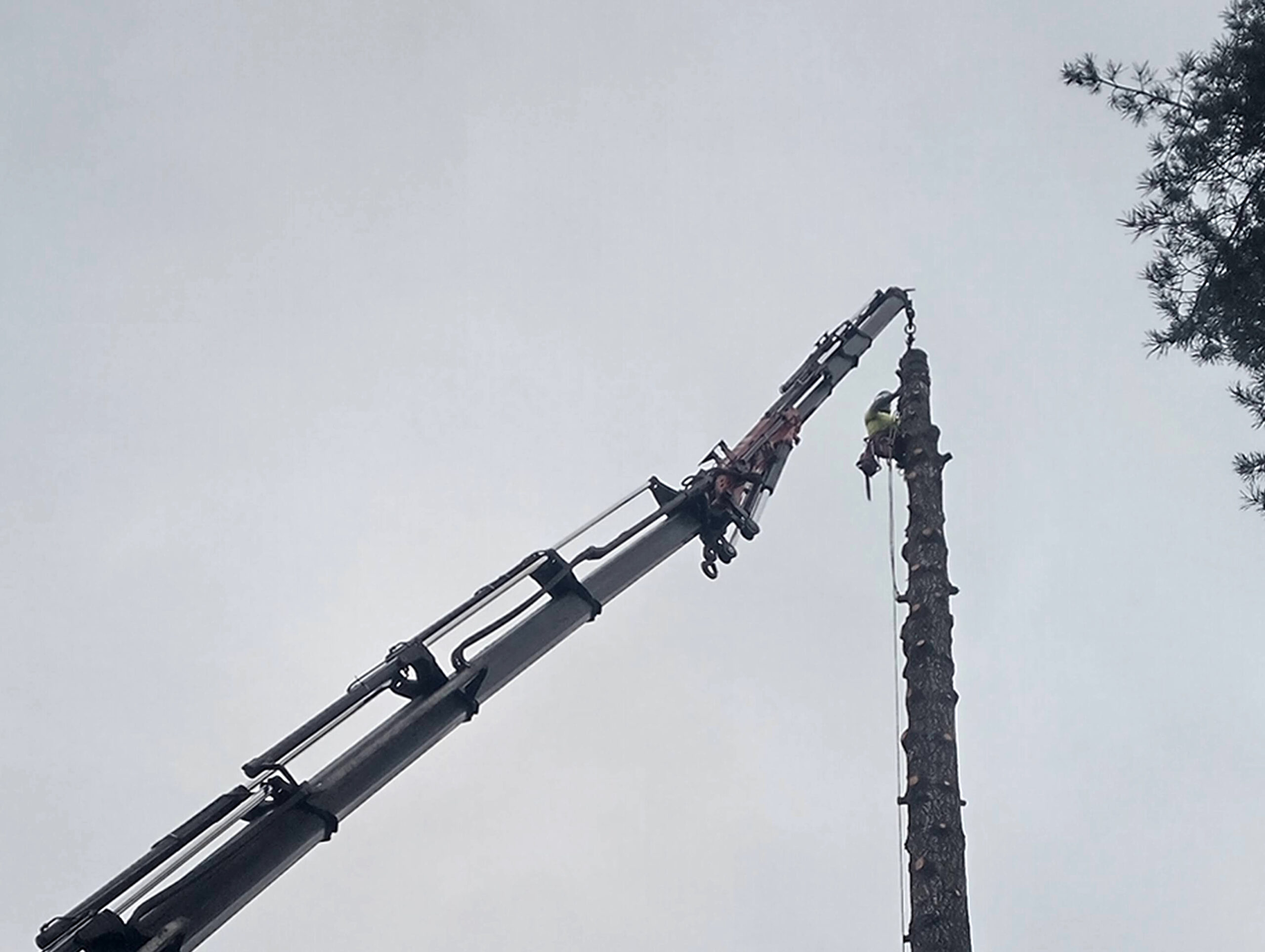 Puun poisto kiipeilytekniikoita ja nosturia käyttäen