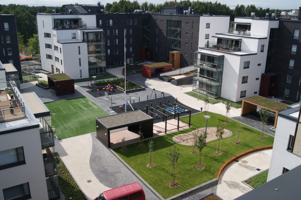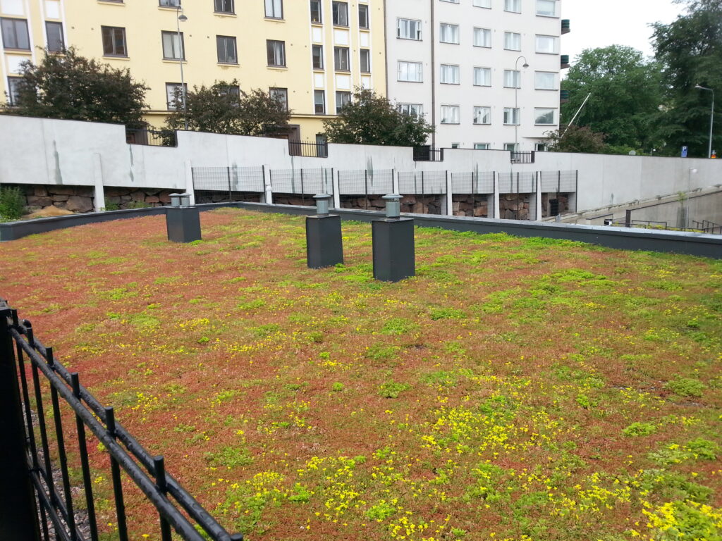 Kalasatama, Helsinki, 2013 Kalasatamaan on asennettu useita kattoja sekä Nordic Green Roof® maksaruohoviherkattoa että Diadem kattopuutarhaa. Nordic Green Roof® kotimainen palosertifioitu maksaruohomatto kasvatetaan Tammisaaressa,