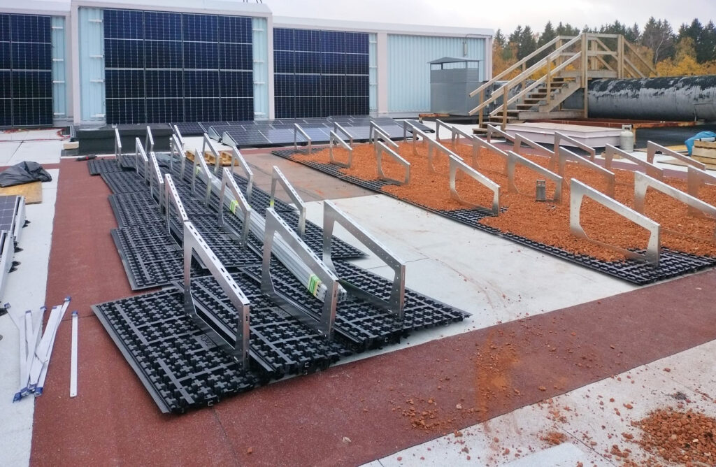 Kerabit, Lohja, 2023 Zinco Solar Base aurinkopaneelit Solar Base-ratkaisulla aurinkoenergiaa voidaan integroida viherkattojärjestelmään ilman läpivientejä. Viherkattorakenne pitää omalla painollaan aurinkopaneelirakenteen paikoillaan.