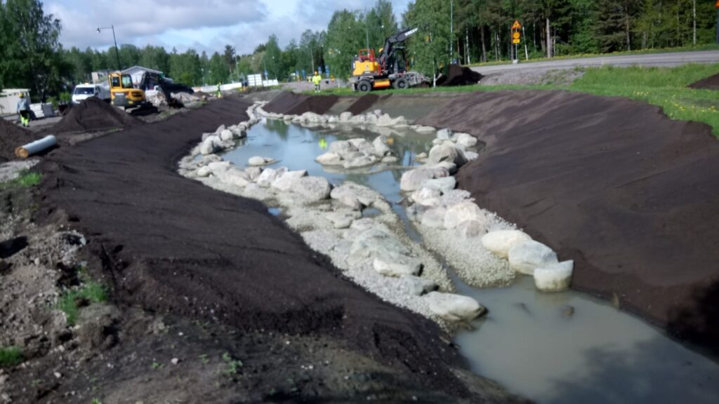 Kivenlahti-Kirkkonummi, Espoo. 1500 m2 Eg Weed UB biomattoa asennettuna istutusalueille, Hyvinkään Tieluiska Oy, KT51. Lisätietoa tuotteesta Eg Weed UB biomatto