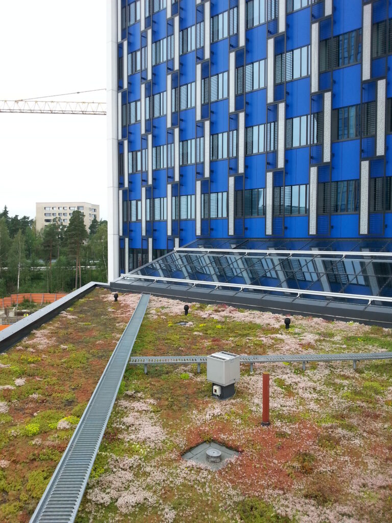Keilaniemi, Espoo, 2014 Kohteessa on toteutettu Nordic Green Roof® maksaruohoviherkattoja useille katoille sekä maantasoon parkkihallin katolle että korkealle kerroksiin. Katot kukkivat runsaasti monikirjoisen lajiston johdosta.