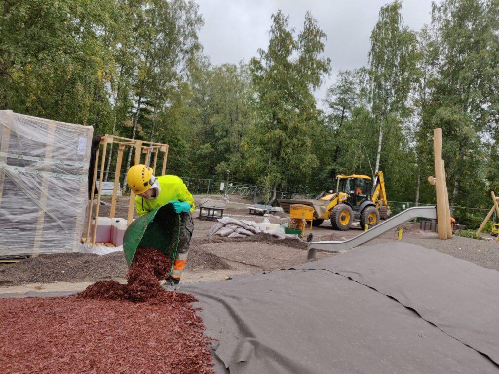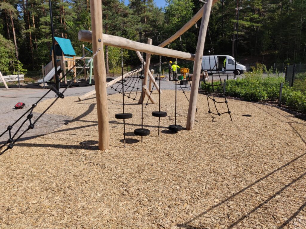 Seikkailupuisto, Kupittaankatu, Turku, 2017 Ecosurface turva-alustaa on asennettu linnoitusalueelle sekä leikkiväleineiden alle.
