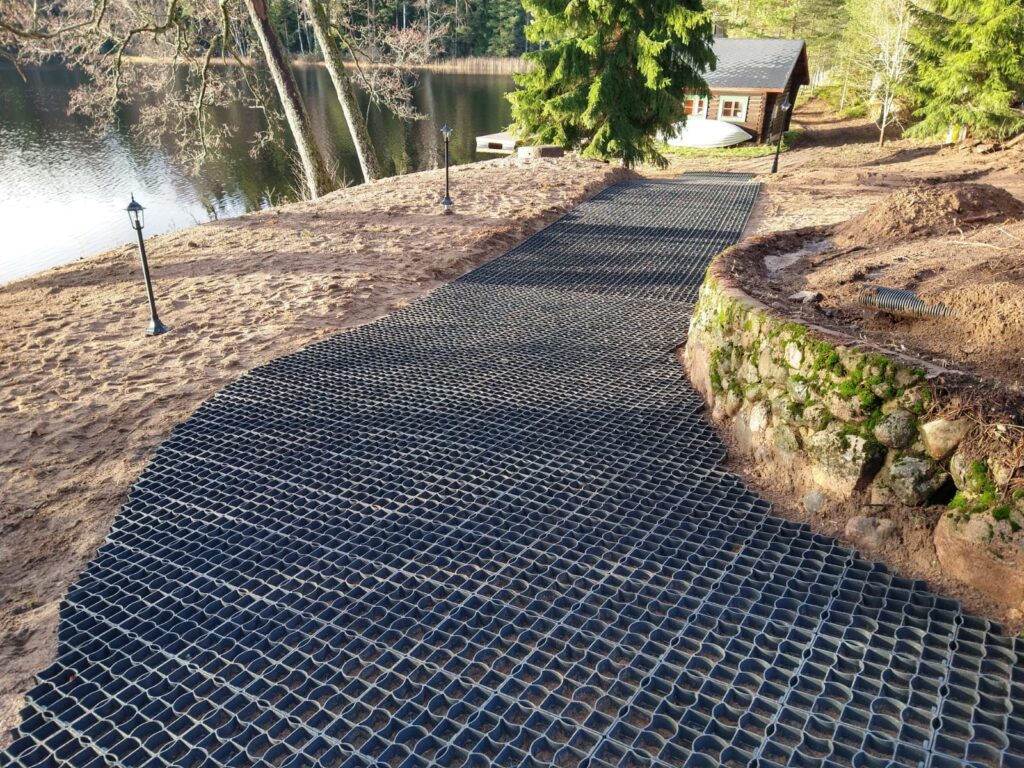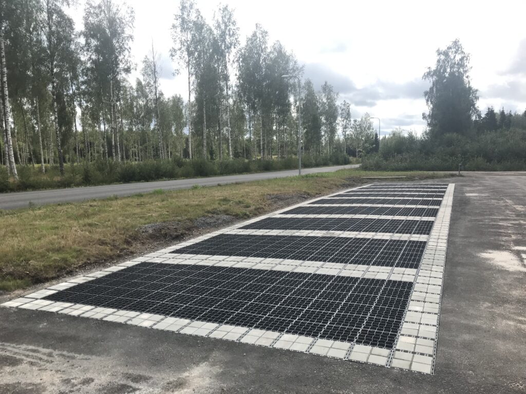 paikoitusalue, Eg-Trading Oy toimipaikka, Tammisaari Ecoraster maakennosto on täytetty murskeella ja EcoBloxx maakennosto betonikivillä. Lisätietoa tuotteesta Ecoraster maakennosto