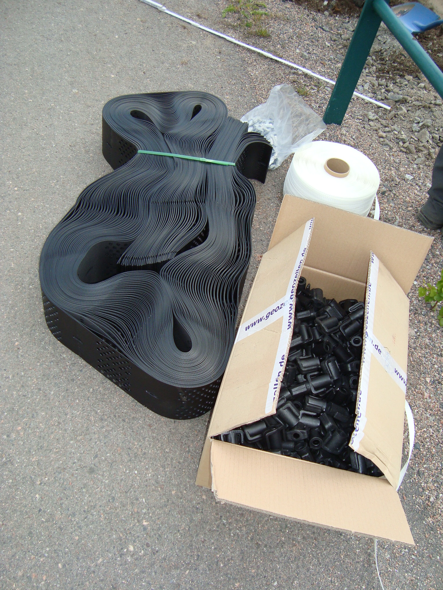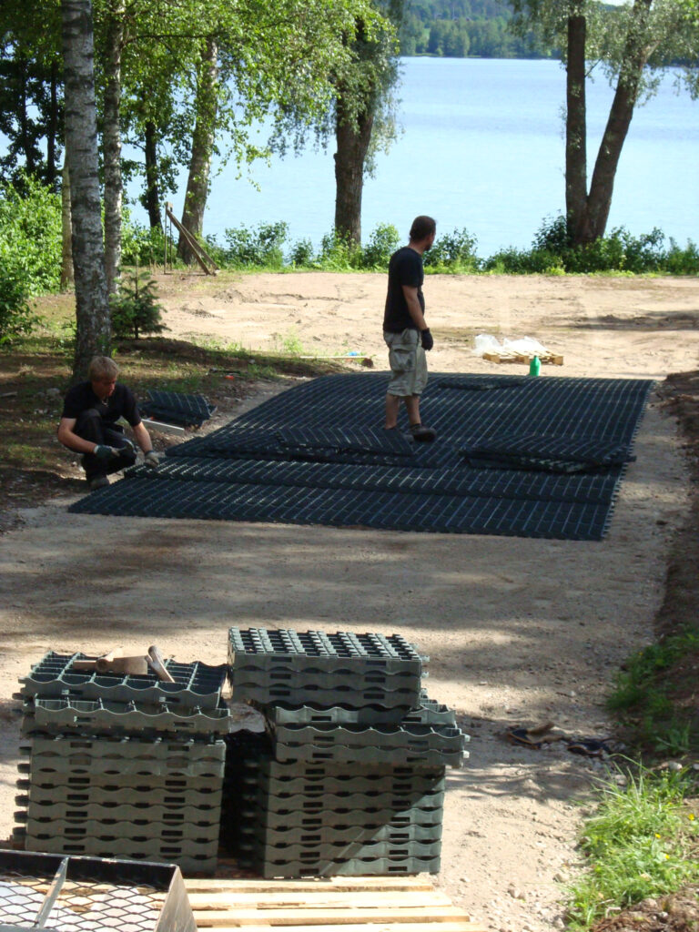 Vihti, 2009 Soilblock maakennosto asennettu rantaan johtavalle tielle/parkkialueelle. Kennojen täyttö maa-aineella ja viheriöittäminen.