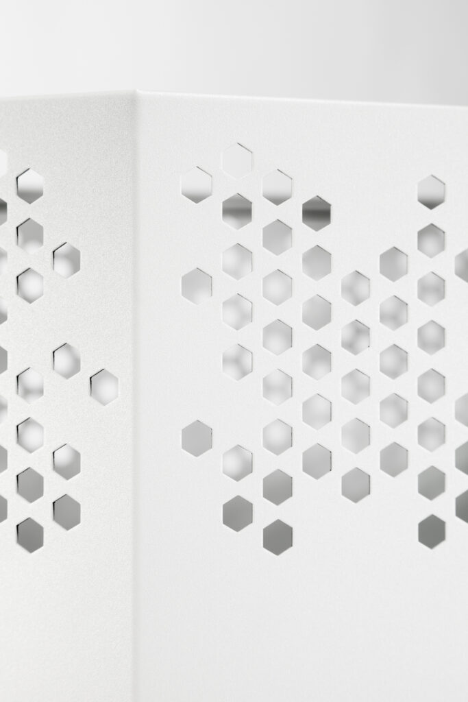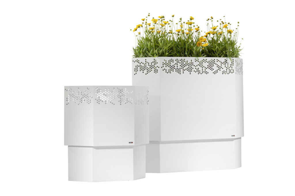 Reunojen hienostuneet lävistyskuviot luovat luonnollisesti syntyneen, elävän pinnan ja antavat ruukuille niiden omaleimaisen ilmeen. Ruukut ovat saatavilla neljässä koossa, lisäksi kaikille kokoille löytyy vielä jalustat. Materiaalina on sinkitty ja valkoinen jauhemaalattu levymetalli, ja kokonaisuutta voidaan täydentää erilaisilla lisävarusteilla.