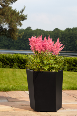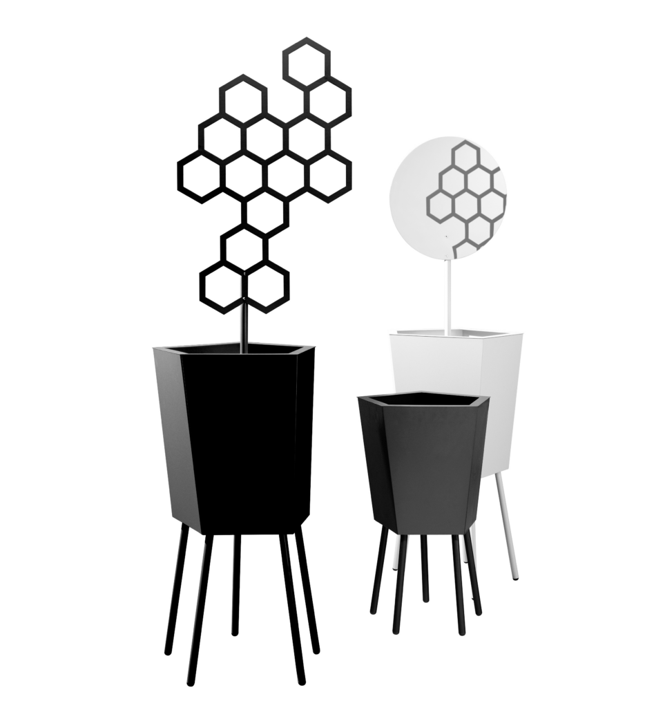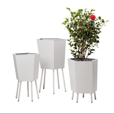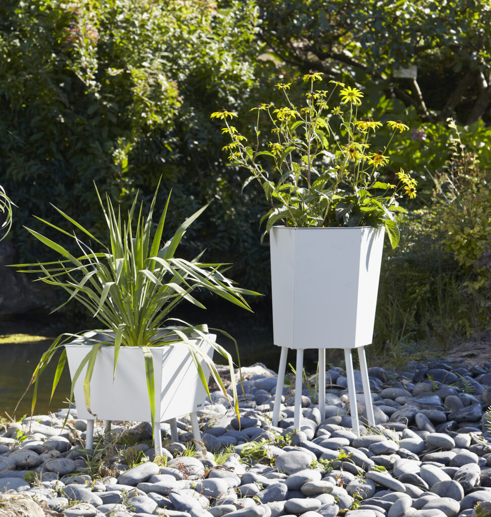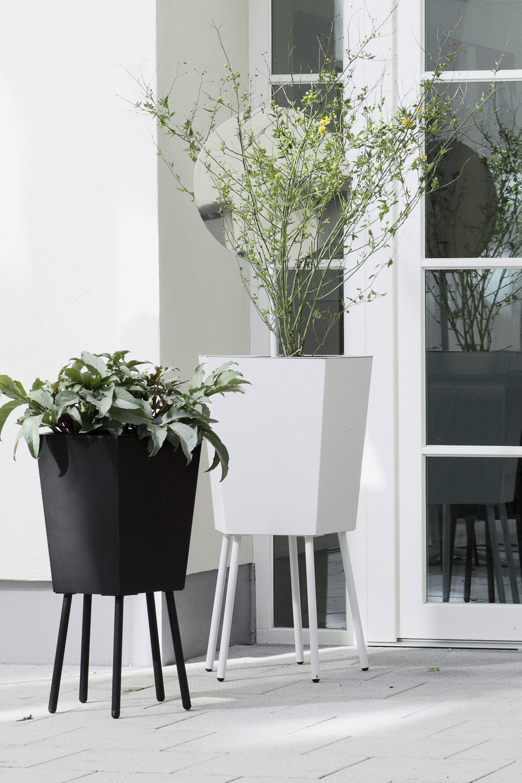 Tämä elegantti jalallinen ruukku yhdistää pelkistetyn muodon ja veistoksellisen ilmeen. Kevyesti kapeneva runko ja hoikat teräsjalat luovat ilmavan vaikutelman, joka sopii erinomaisesti moderneihin sisäänkäynteihin, aulatiloihin ja edustaviin ulkotiloihin.