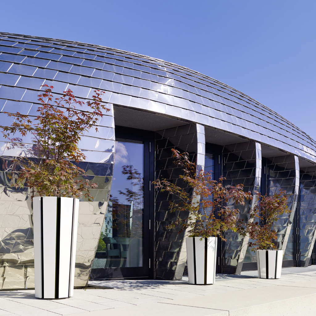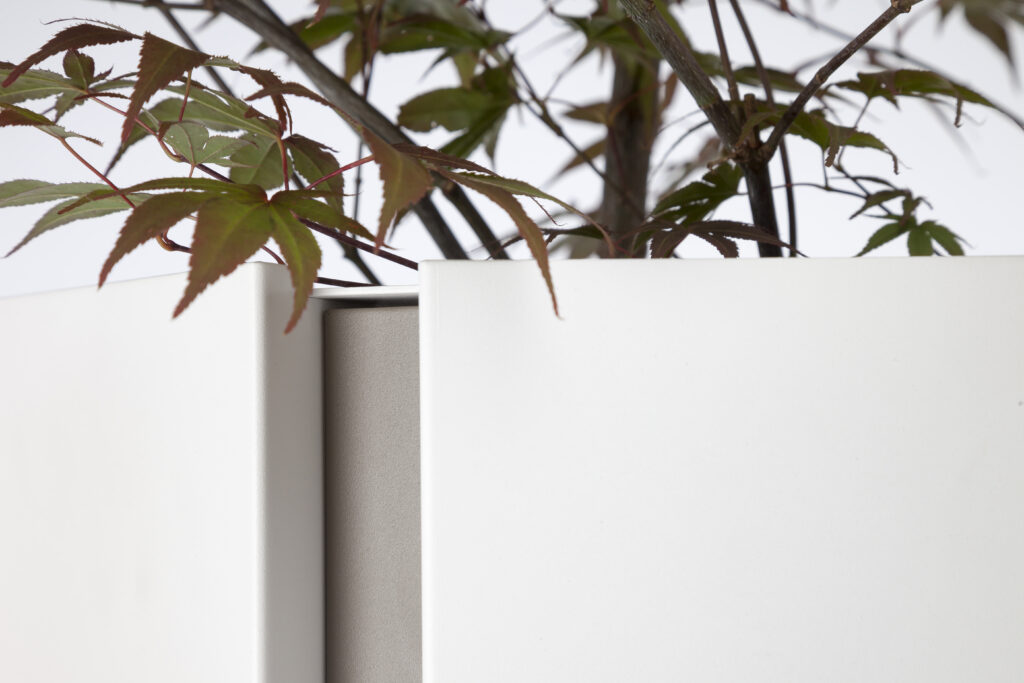 Kolme eri kokoa täydentävät toisiaan saumattomasti. Yksittäinen istutusastia toimii katseenvangitsijana sellaisenaan, ja ryhmiteltynä ne luovat vaikuttavan kokonaisuuden rehevän kasvillisuuden kanssa.
