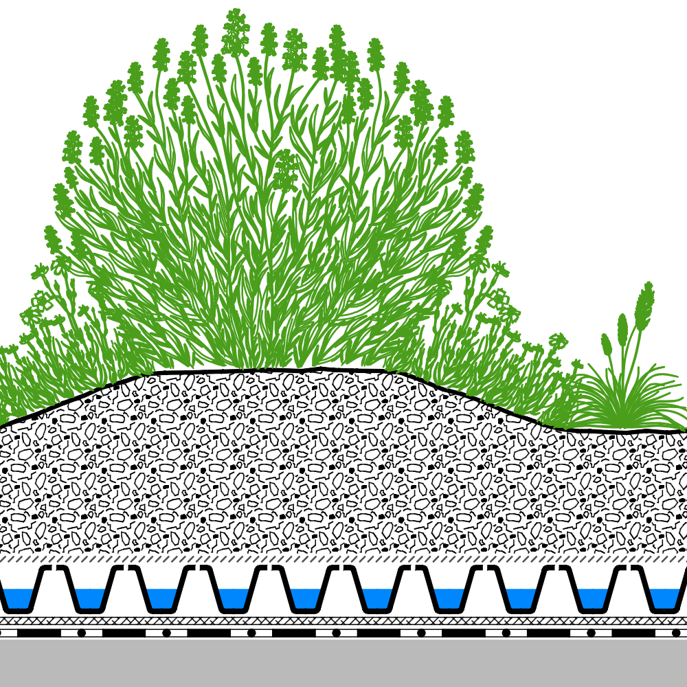 Tämä järjestelmäratkaisu on ideaalinen rakenne yksinkertaiselle semi-intensiiviselle viherkatolle, kukkivin perennoin ja tuoksuvin yrtein. Kasvivalikoima muodostuu kuivuutta kestävistä perennoista, niittykasvillisuudetsa, heinistä ja matalista pensaista, jotka muodostavat visuaalisesti miellyttävän kasvuston. Vaatii juurruttuaan vain vähäistä hoitoa.